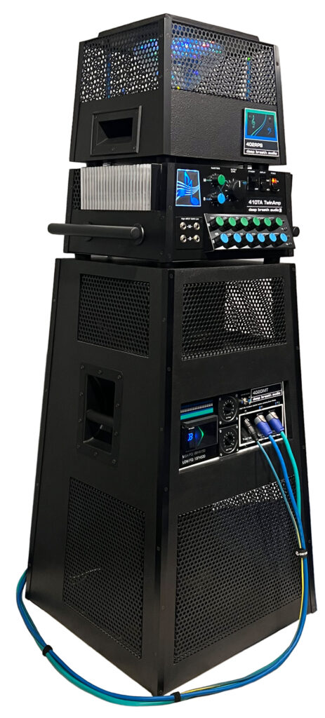 Therefore: Deep Breath Audio has developed the 412 TwinAmp™ to bring these qualities to the Stick. Electronic keyboards and other instruments will be made to sound glorious when piped through the synapses and muscles of this electro-acoustic engine.